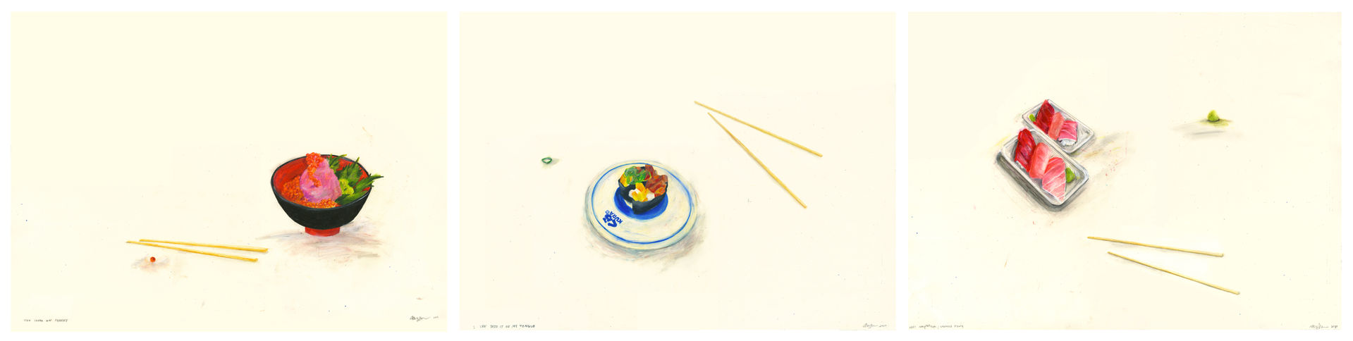 "The Ikura was Perfect", Colored pencil, oil pastel & Powder pastel, Hot Press Arches, 22"x 30" (55,88 cm x 76,2 cm ), 2024